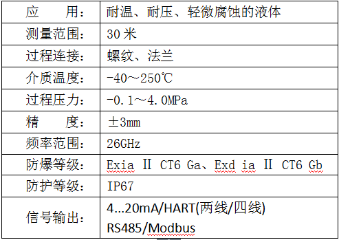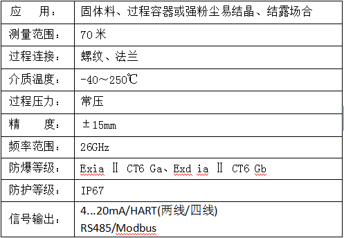 HHRD系列傳感器是26G高頻雷達(dá)式物位測(cè)量?jī)x表,輸出4-20mA模擬信號(hào),測(cè)量******距離可達(dá)70米。 天線(xiàn)被進(jìn)一步優(yōu)化處理,新型的快速的微處理器可以進(jìn)行更高速率的信號(hào)分析處理,使得儀表可以用于:反應(yīng)釜或固體料倉(cāng)非常復(fù)雜的測(cè)量條件。